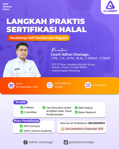 Kursus ini memberikan panduan praktis dan komprehensif bagi pelaku usaha untuk memahami proses sertifikasi halal, baik melalui skema Self Declare maupun Reguler. Anda akan mempelajari langkah-langkah penting, persyaratan, serta strategi efektif untuk memastikan produk Anda memenuhi standar halal dengan mudah dan efisien. Dengan bimbingan dari para ahli, kursus ini dirancang untuk memudahkan Anda dalam mendapatkan sertifikasi halal yang diakui secara resmi, mendukung legalitas dan reputasi produk di pasar.