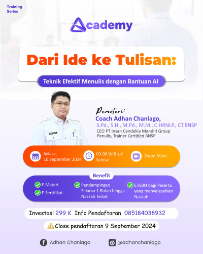 • Peserta akan merasa lebih percaya diri dalam menulis dan menggunakan teknologi AI sebagai alat bantu yang powerful dalam mengembangkan karir atau hobi menulis mereka.
